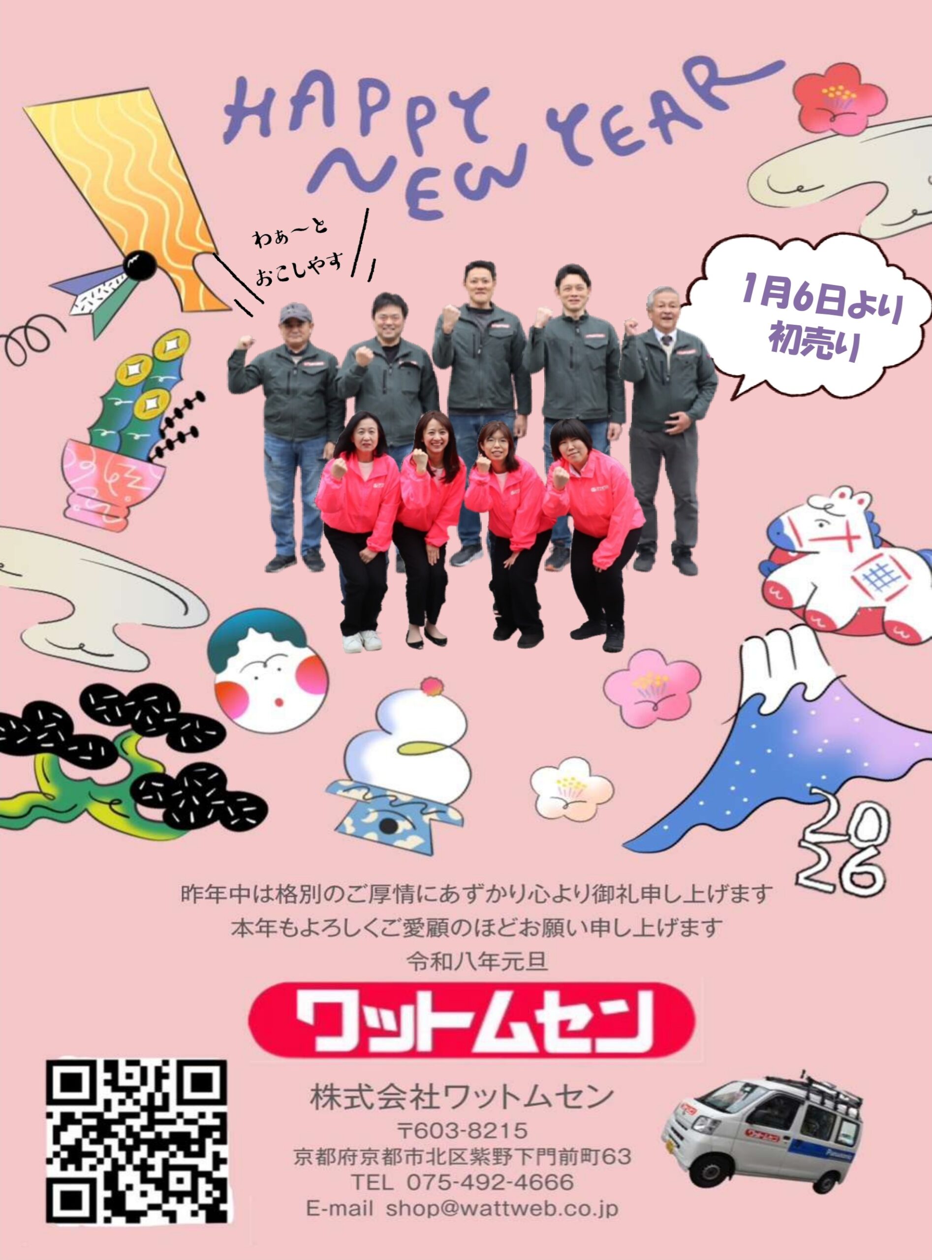 2026/01/01 わっとブログトップお知らせお役立ち情報 新年のごあいさつ 2026🐎 新年のごあいさつ🐎🐎🐎 あけましておめでとうございます✨ 昨年中は格別のご厚情にあずかり心よりお礼申し上げます 本年もよろしくご愛顧のほどお願い申し上げます😊 令和8年元旦 ワットムセン社員一同 関連記事 【現場レポート】三菱電機 ルームエアコン 霧ヶ峰 MSZ-GV2222-W交換工事 【現場レポート】ダイキン エアコン S223ATCS-W交換工事 トイレの床から水漏れ💦使っていない時は濡れていないが。。。 今回は京都市北区のお客様よりエアコン新規取付のご依頼を頂きました😊【三菱電機 ルームエアコン 霧ヶ峰 MSZ-GV2523-W】 【現場レポート】シングル壁付混合水栓TKS05315台所水栓交換工事 【現場レポート】日立 ルームエアコン RAS-2212T 交換工事