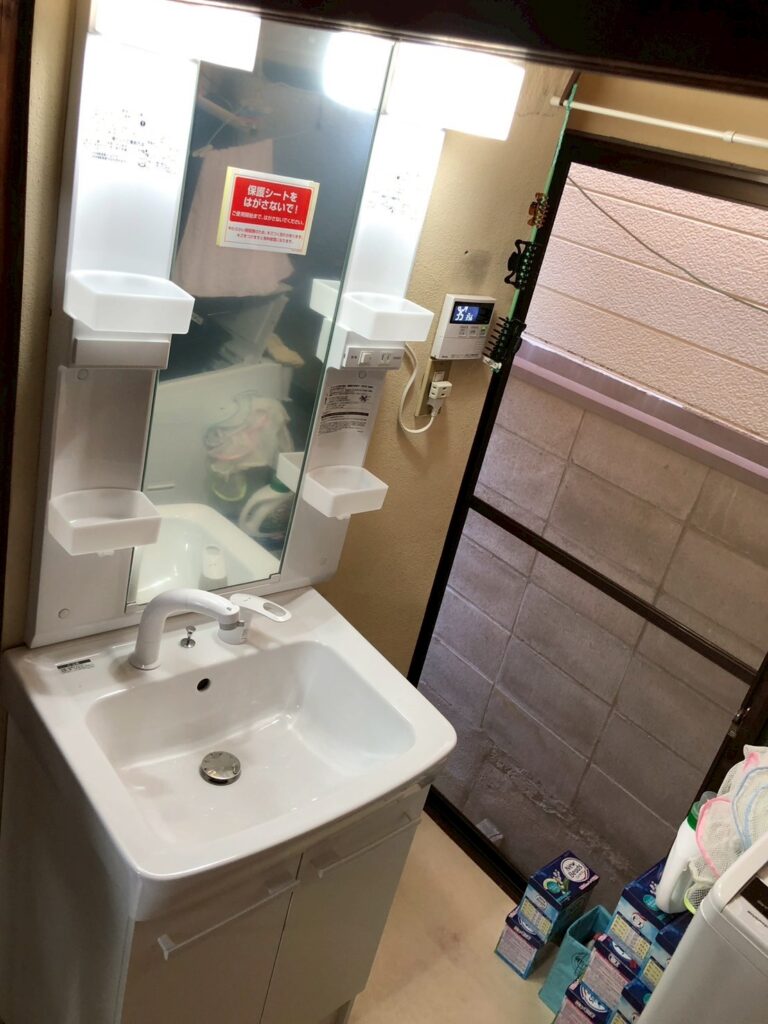 【施工事例のご紹介】 今回は京都市北区のお客様より洗面化粧台の洗面ボールから下は数年前に取り換えたが 上の方(鏡)が古くなってきたので可能な…