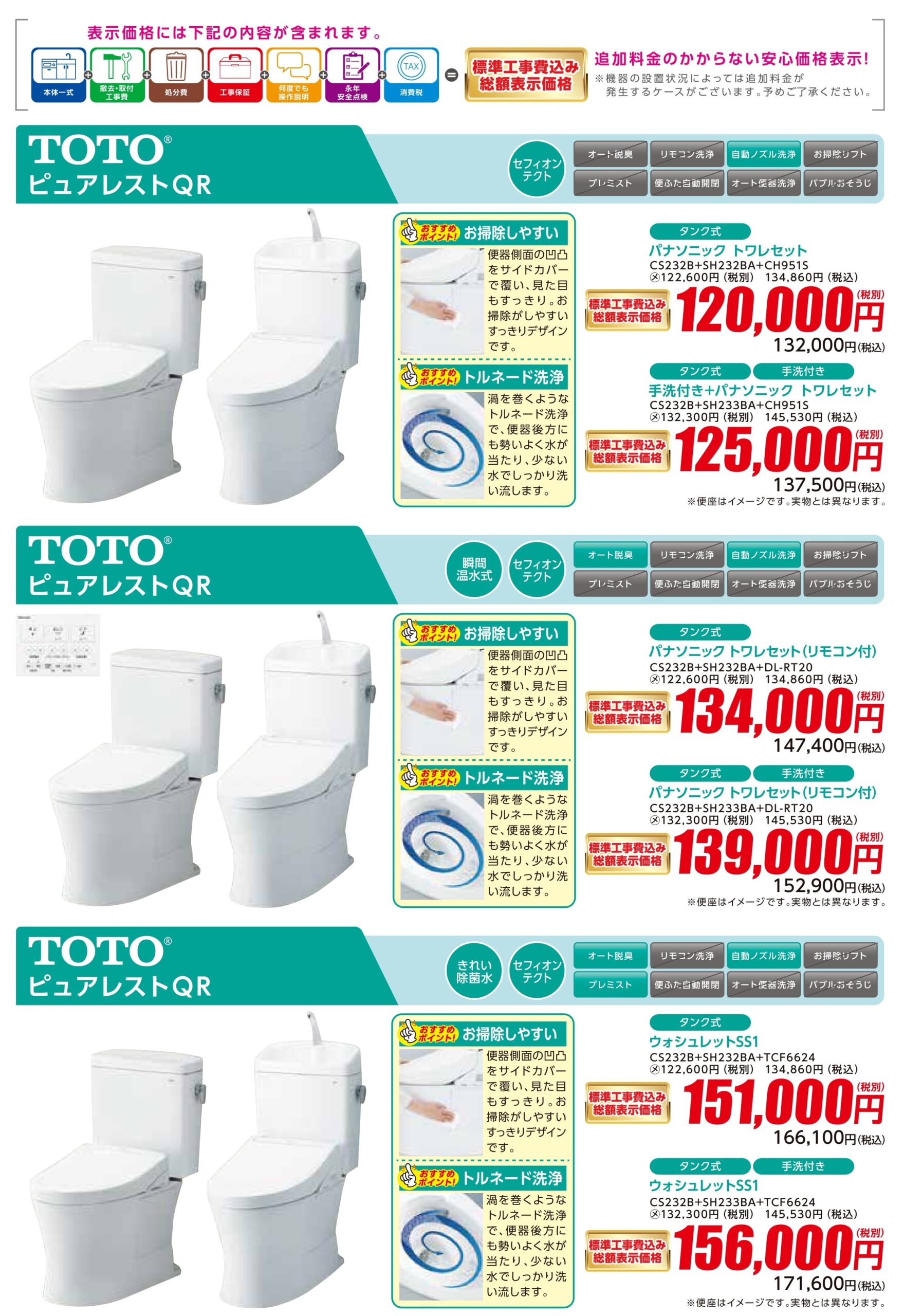 TOTO ピュアレストQR リモデル 手洗付き CS232BM #SC1+SH233BA#SC1+TC301#SC【京都市上京区】