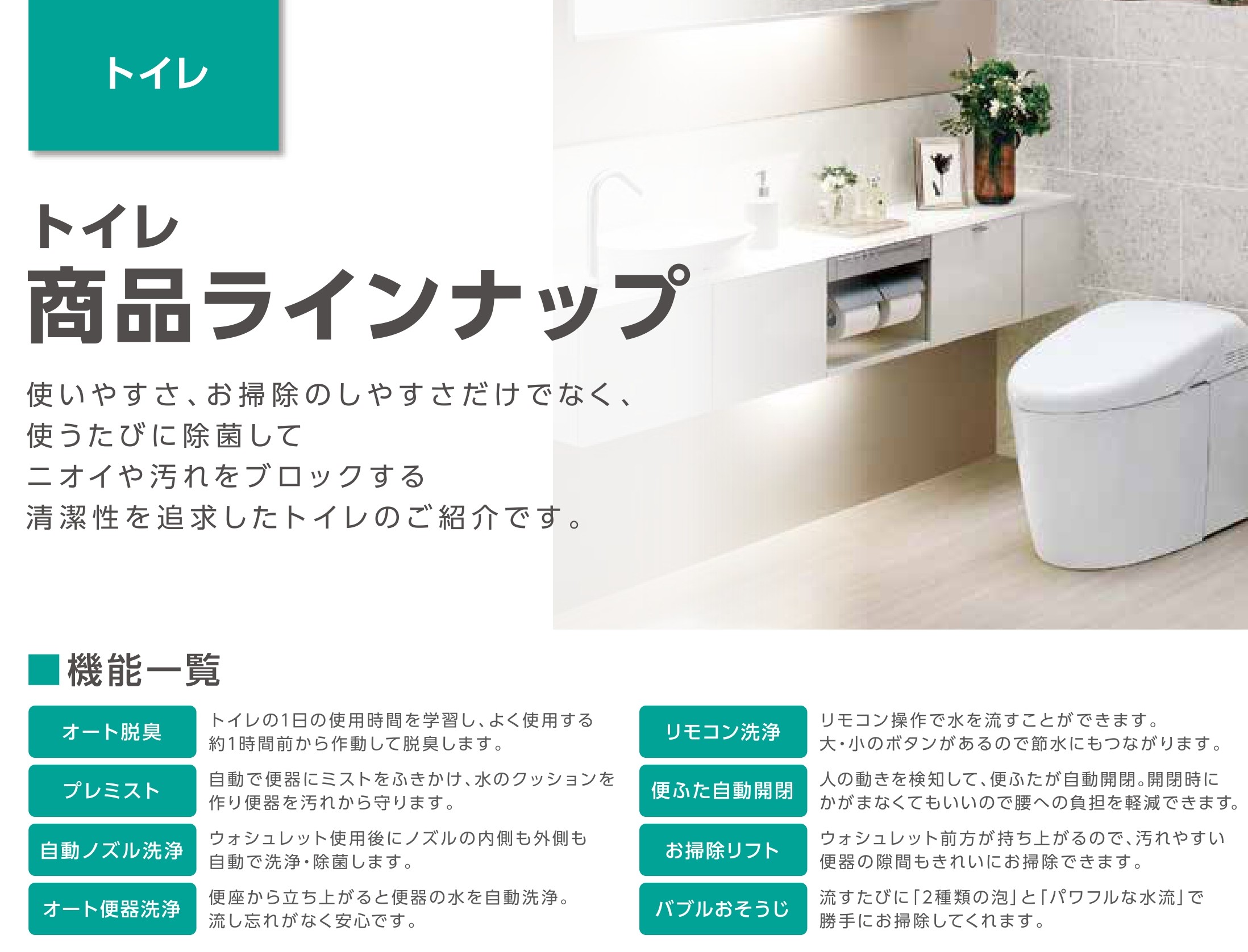 もっと簡単にキレイに掃除したい。 節水型のトイレにしたい。和式のトイレを洋式にしたい。こもりがちなトイレの匂いをなんとかしたい。