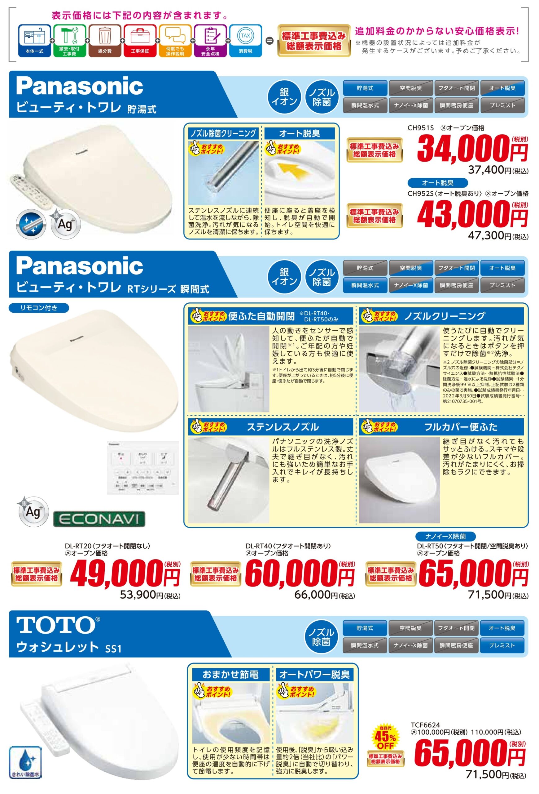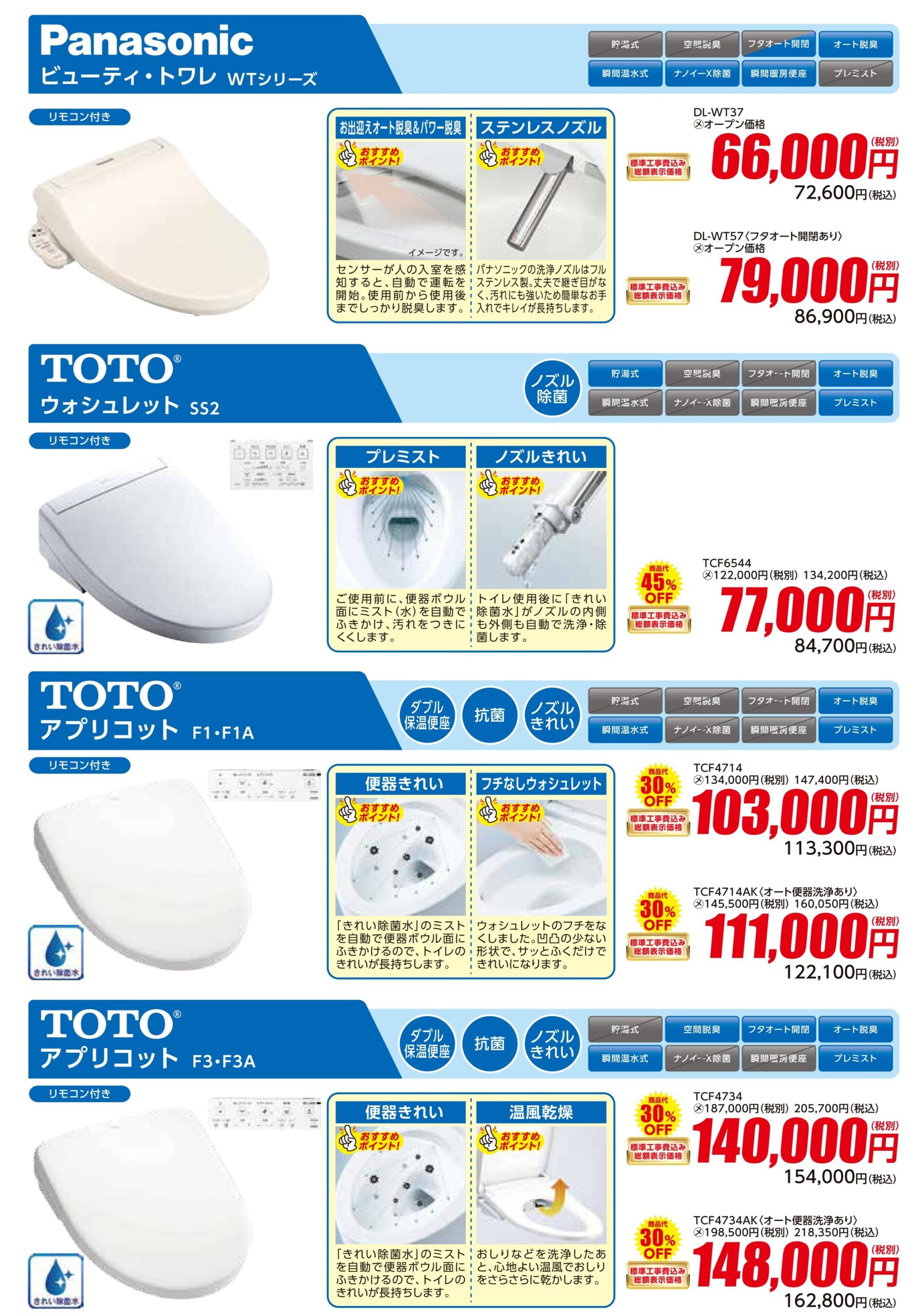 ウォシュレット・温水洗浄便座の交換取替え工事は京都市北区のワットムセンへおまかせください!人気のパナソニック・リクシル・TOTOの便座をご提案いたします。標準工事費は10,000円(税別)です。交換工事は、既存調理器撤去・処分費用コミコミ。お見積もりから交換工事まですべて自社で担当いたします。お気軽にお問い合わせください。